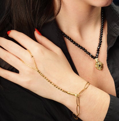 composé d'une chaîne poignet en acier inoxydable doré, perles en hématite dorées et perles miyuki