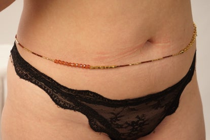 Chaîne de taille perles allongées (forme en grain de riz) turquoise.