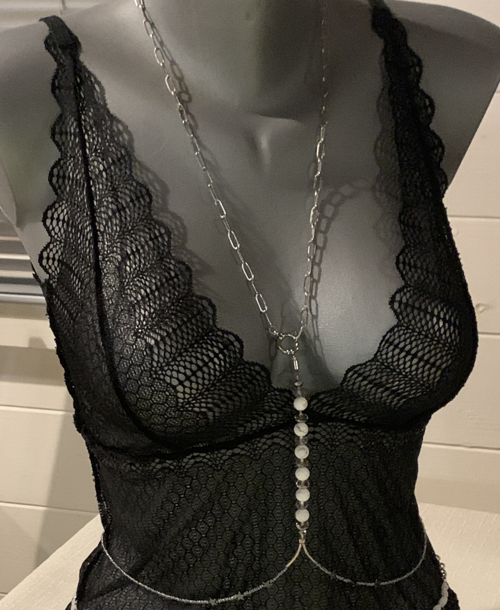 Dans sa nouvelle version, de petites étoiles en hématite ont été rajoutées (voir photo mannequin).